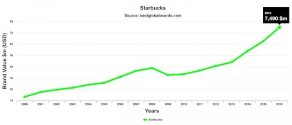 星巴克品牌價值增長曲線