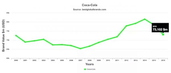 可口可樂的品牌價值增長曲線