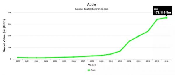 蘋果的品牌價值增長曲線