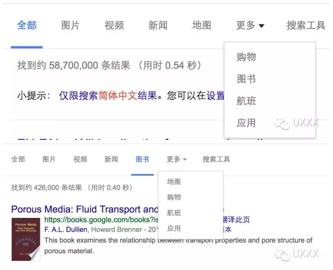 如果Tab數目過多,可以參考google搜索頁面,Tab的處理方式,將更多Tab內容收納于更多中,當用戶點擊更多中的菜單時,將其顯示在主Tab上。