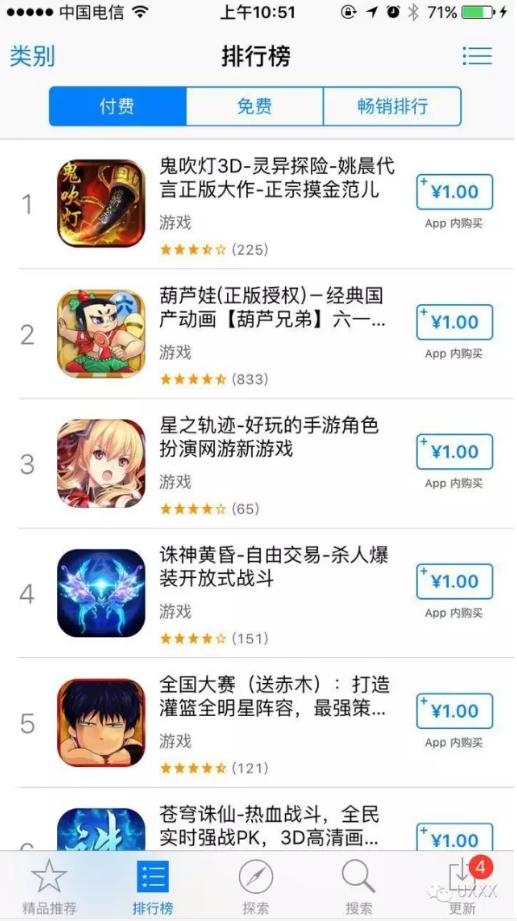 具體可參考App Store-排行榜中,【付費】、【免費】、【暢銷排行】三個Tab的順序。