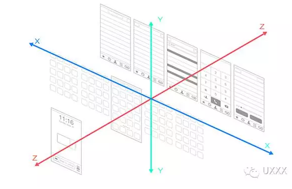 在交互范疇內,如上圖所示即信息的結構:在樹形結構中,Z軸即表示信息的深度,即鏈接的信息層數;X軸表示一個層級包含的頁面總數(可以理解為此文的Tab數),即鏈接的廣度;Y軸表示該層級頁面的滑動的最長距離,即頁面的長度。