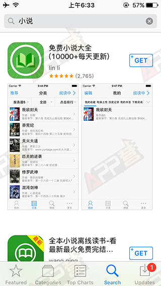 圖:App Store美國區(qū)搜索“小說”的結(jié)果