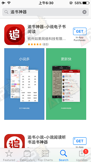 圖:App Store美國區(qū)搜索“追書神器”的結(jié)果